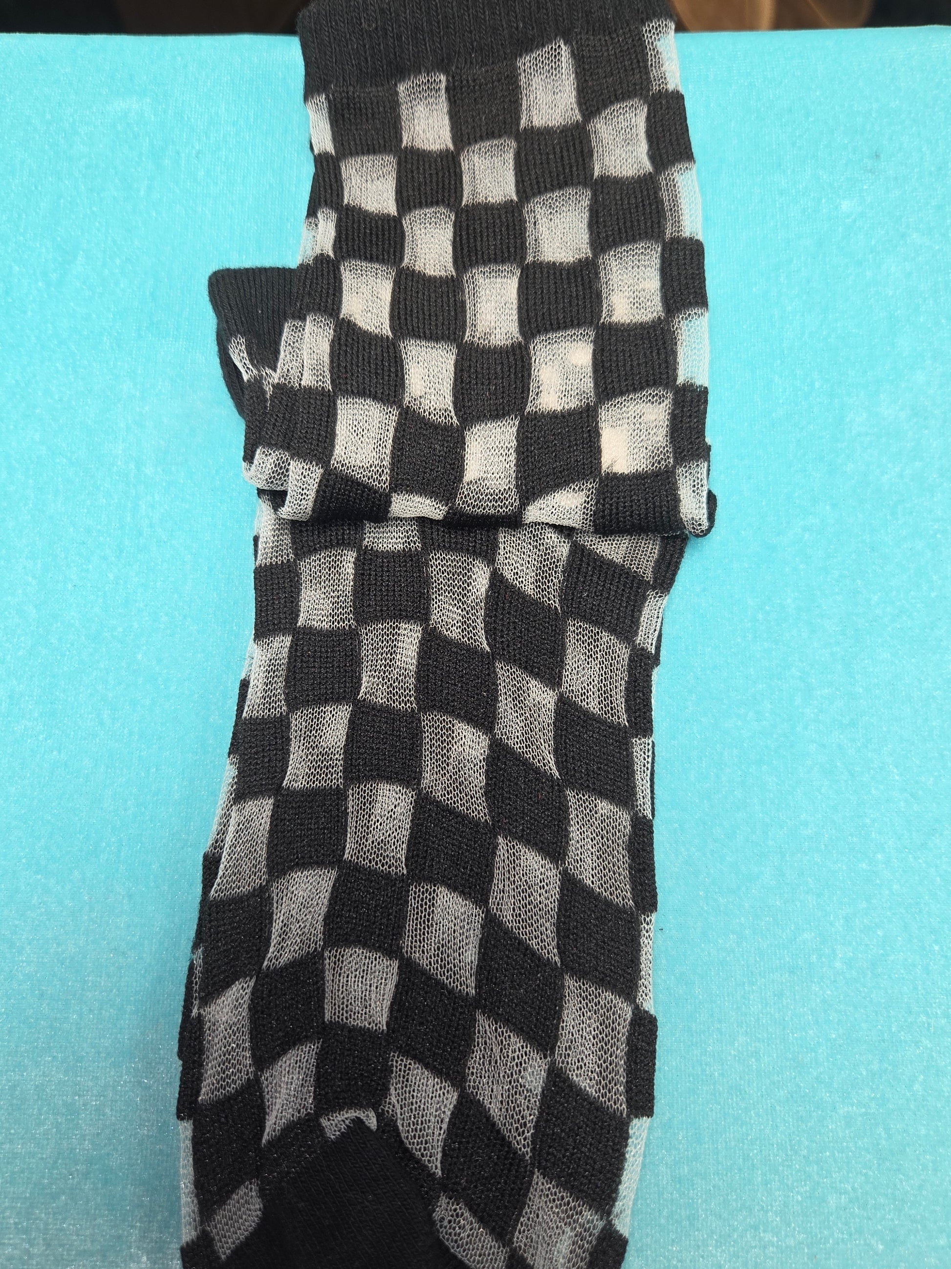 Black or pink mesh checkered socks that peak out of shoes so your socks could possibly be a show stopper of your outfit.