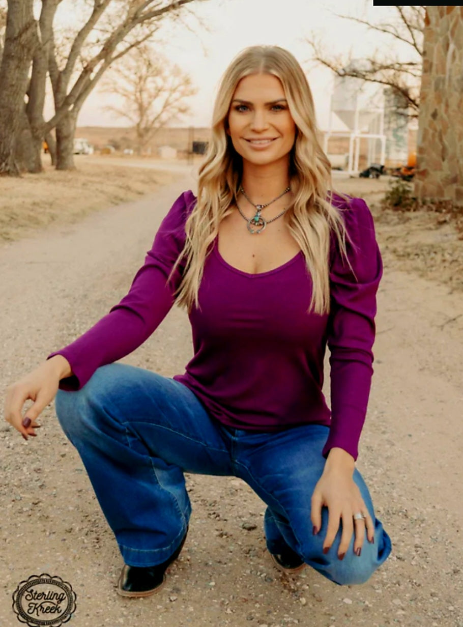 Look like a million bucks in this one. Enjoy the luxe look of this classy top. Featuring ribbed fabric with bubble sleeves in the shoulder for a unique style.